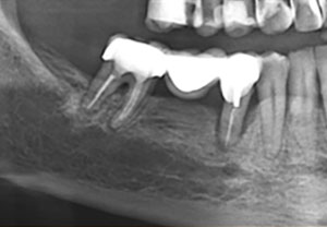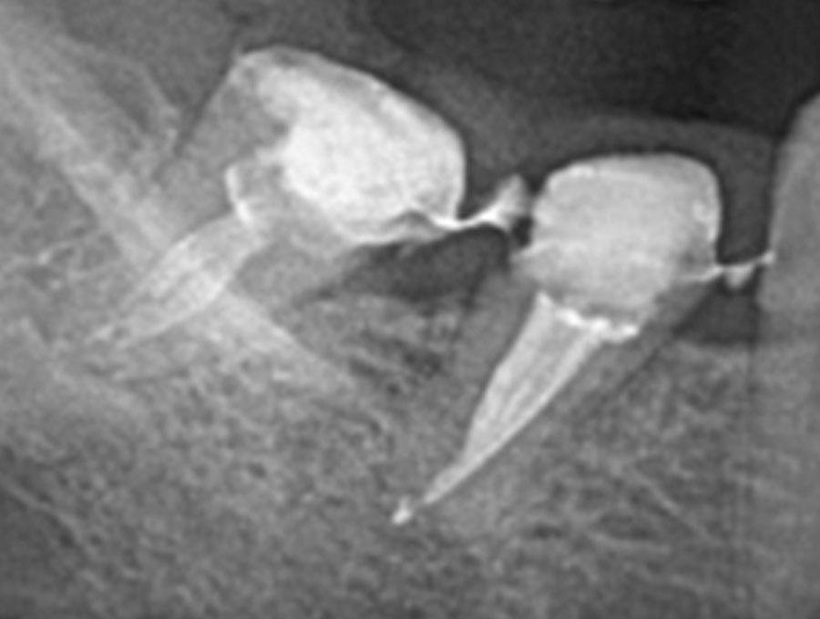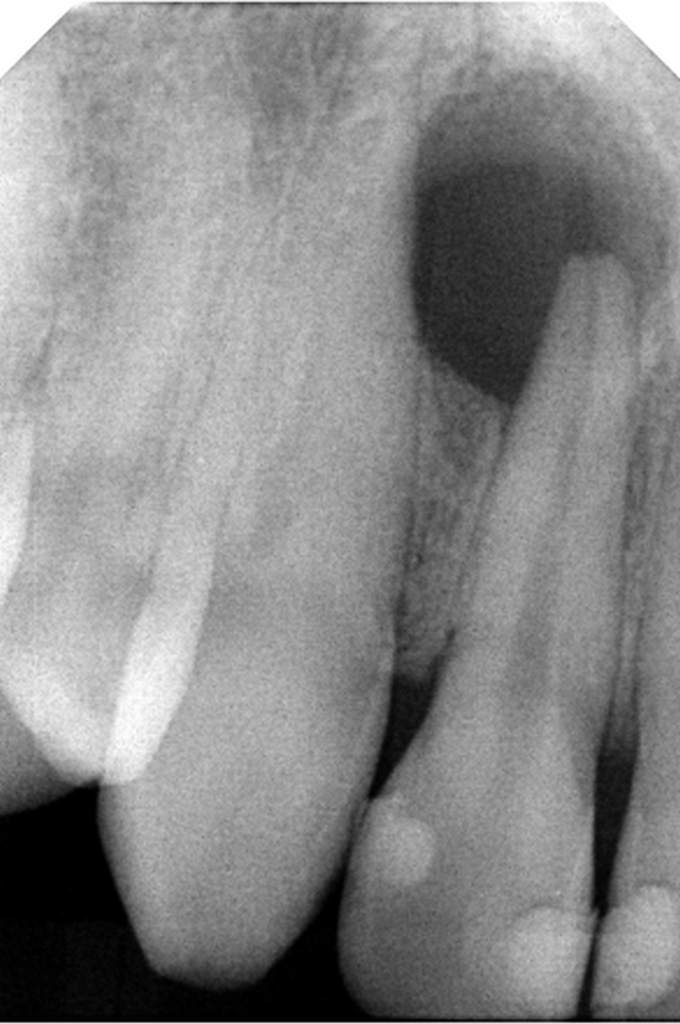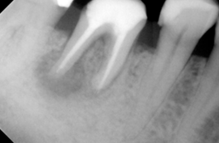 Ατελής ενδοδοντική θεραπεία που οδήγησε σε περιακρορριζική καταστροφή.